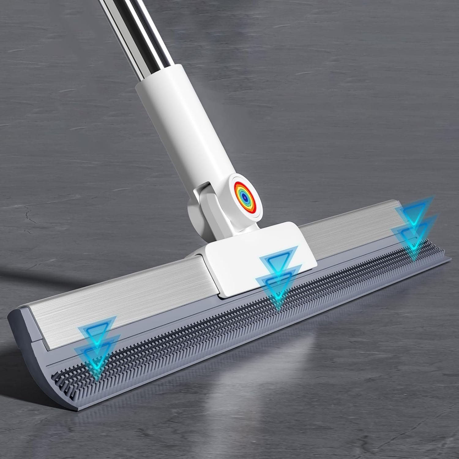 18″ Heavy Duty Rubber Floor Squeegee with Long Handle, 2-in-1 Pet Hair & Water Cleaning Tool
