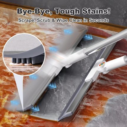 Upgrade Multi-Function Floor Scraper: This physical cleaning tool features a 53.5-inch adjustable handle and rotating head, making it easy to clean under furniture and tight spaces. The detachable design allows flexible use on bathtubs, floors, carpets, and countertops.