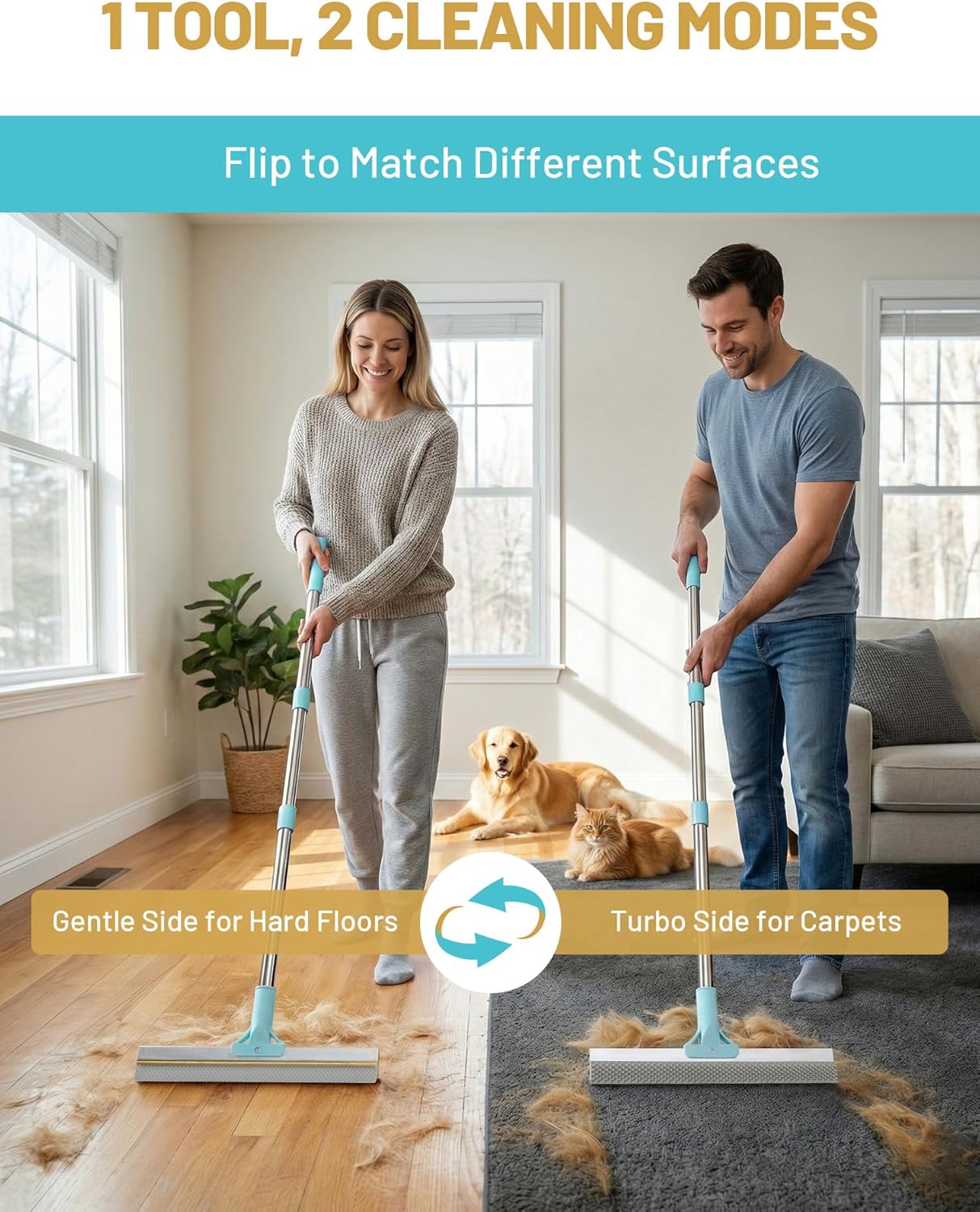 Dual-Sided Cleaning Tool: One side lifts embedded debris and hair from carpets, while the other provides gentle cleaning on smooth floors and rugs.